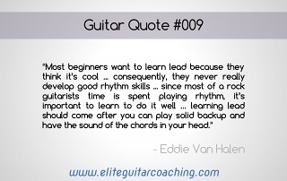“Most beginners want to learn lead because they think it’s cool ... consequently, they never really develop good rhythm skills ... since most of a rock guitarists time is spent playing rhythm, it’s important to learn to do it well … learning lead should come after you can play solid backup and have the sound of the chords in your [...]